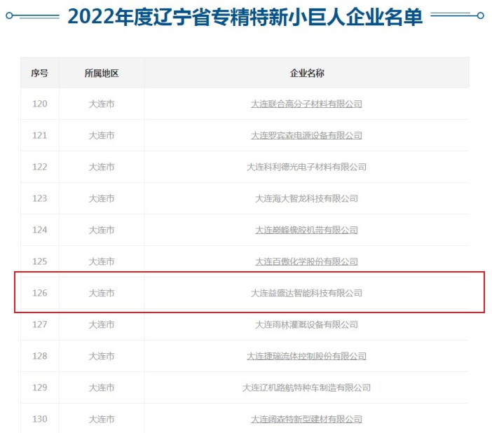 近日,大連益盛達(dá)智能科技有限公司憑借出色的綜合實力,榮獲2022年遼寧省專精特新“小巨人”企業(yè)稱號。